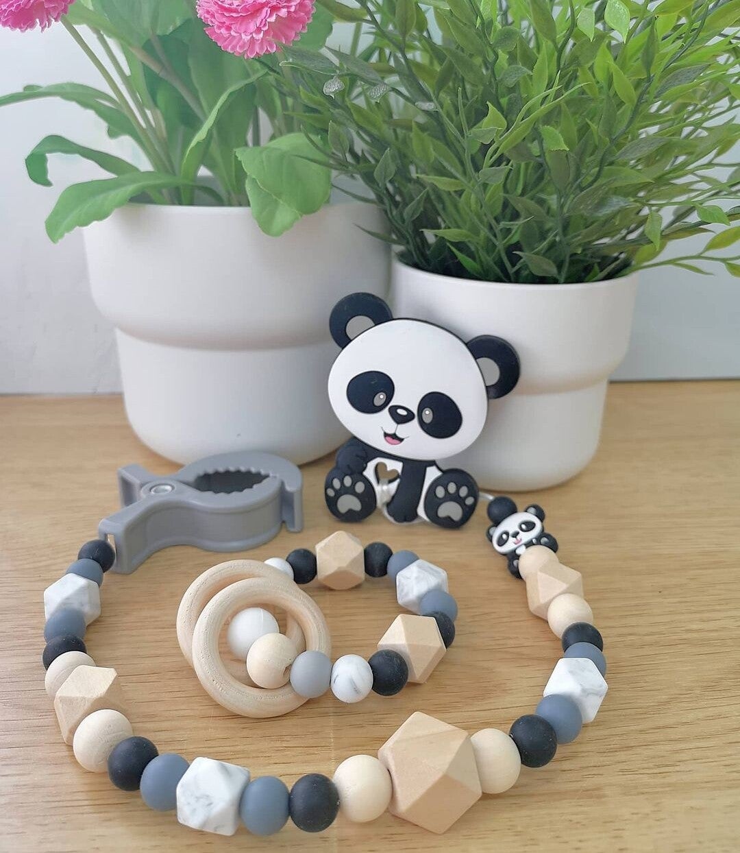 Sujetachupetero en barra de carrito con pulsera mordedor.